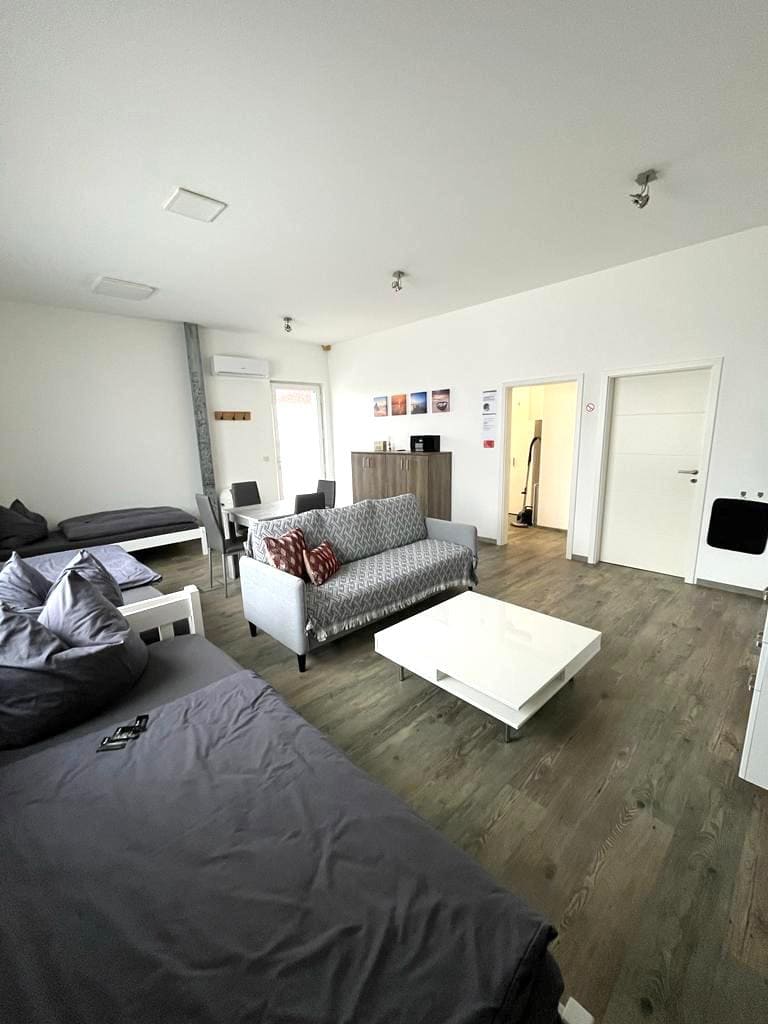Es erwarten Sie komplett neu Stil-möblierte, mit Herz eingerichtete Räumlichkeiten, sodass sich jeder gleich wohlfühlen kann. Entspannen Sie sich an warmen Tagen gemütlich auf unserem Balkon, Terrasse oder Garten. Jedes Zimmer sowie jede Wohnung sind komfortabel eingerichtet und verfügen über gemütliche Betten, einen Schrank für Kleidung, einen Tisch sowie Sitzmöglichkeiten und einen Smart-TV mit WLAN-Anschluss, Netflix und YouTube. Frische Bettwäsche und Handtücher sind selbstverständlich inklusive, sowie eine Erstausstattung für die Körperpflege.