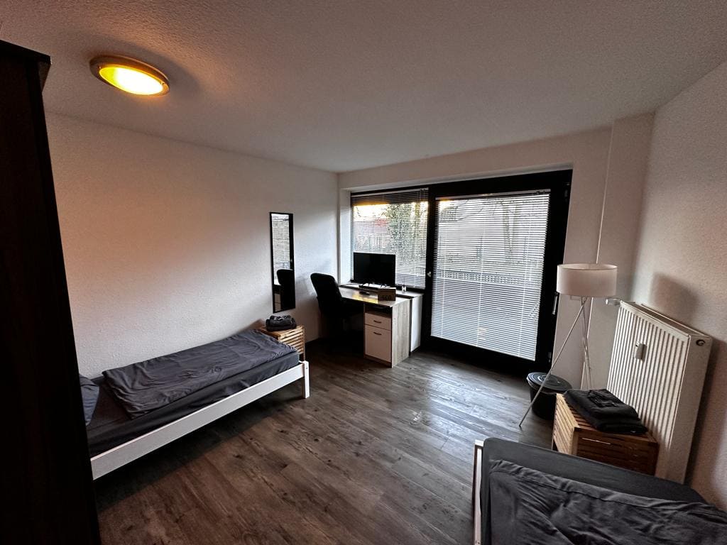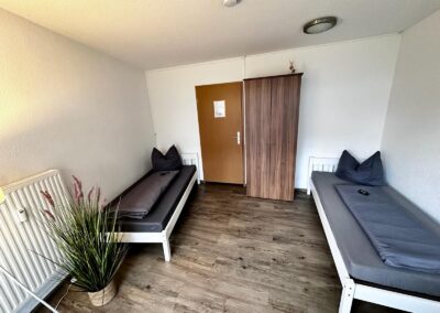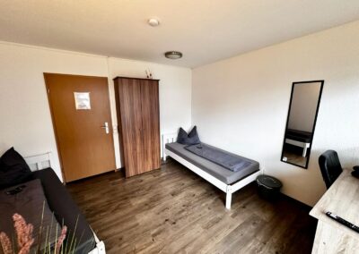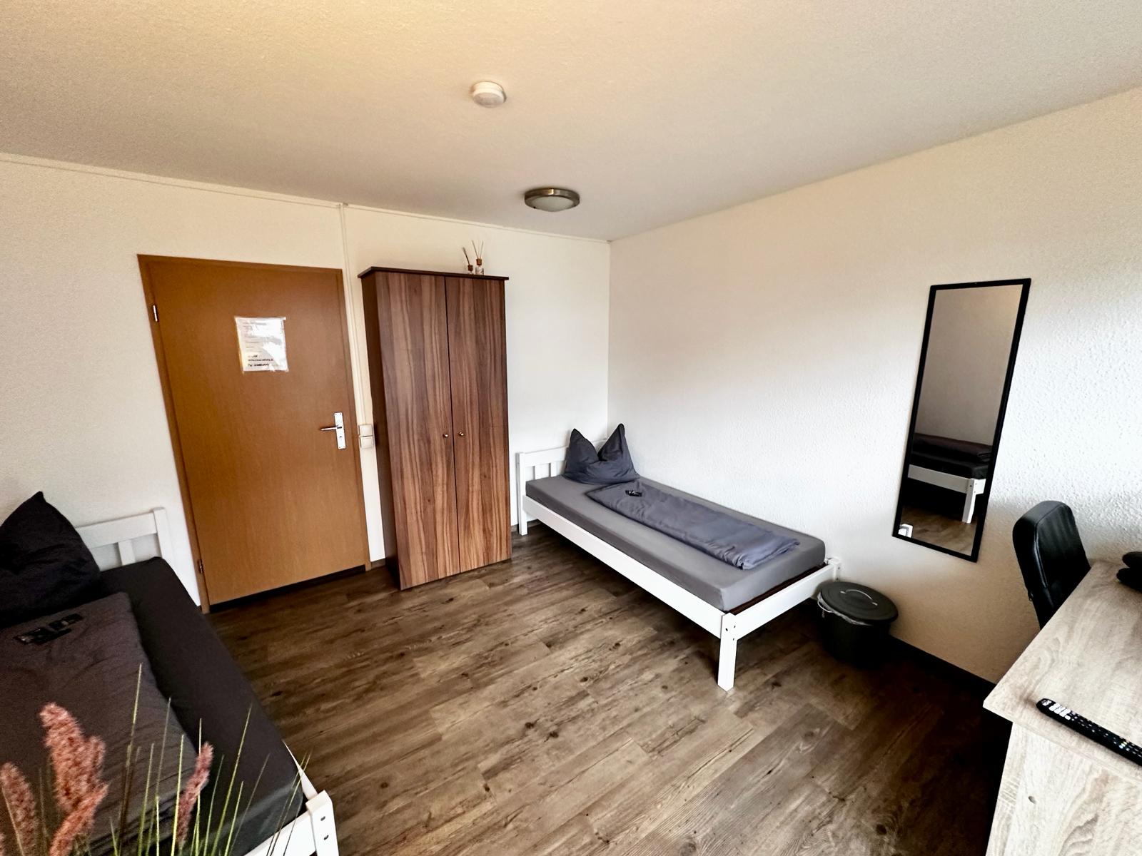 Kirchstraße 19 Erdgeschoss Ferien- & Monteurzimmer Zimmer für bis zu 2 Personen. Fläche: 17 m² Ausstattung: Voll ausgestattete Küche Fernseher Netflix & YouTube Kostenloses W-LAN Waschmaschine Balkon Preis: Ab 2 Personen: 20,00 € pro Person/Nacht 1 Person: 35,00 € pro Nacht Kontakt aufnehmen